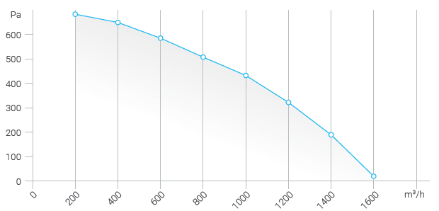 Wentylator kanałowy promieniowy FERONO z liniowym przepływem powietrza do podłączenia kanału wentylacyjnego wewnątrz pomieszczenia. Dzięki nowoczesnej konstrukcji wentylator osiąga wysokie ciśnienie i wydajność przy minimalnym poziomie hałasu.